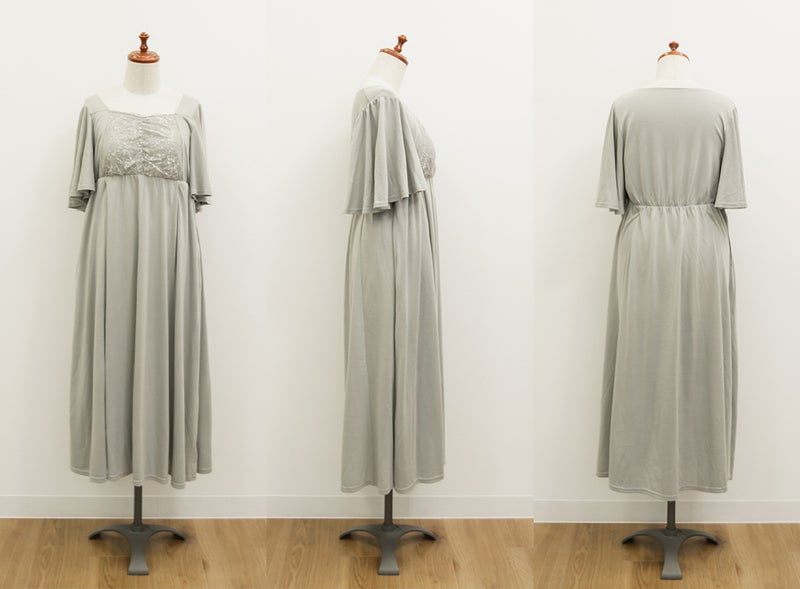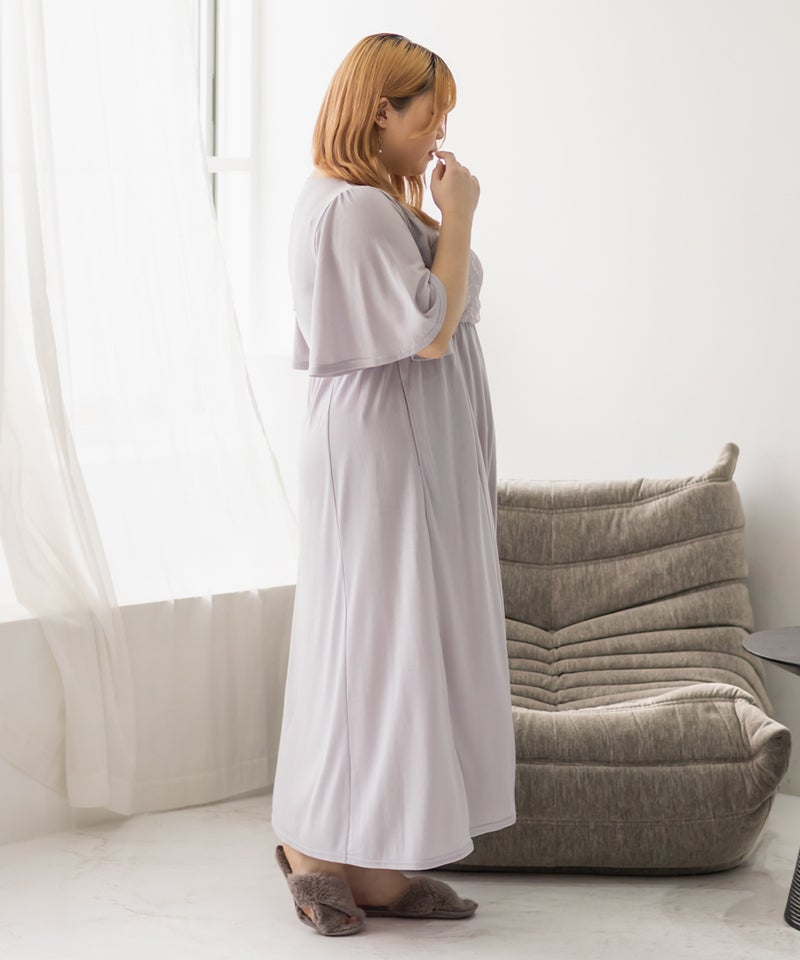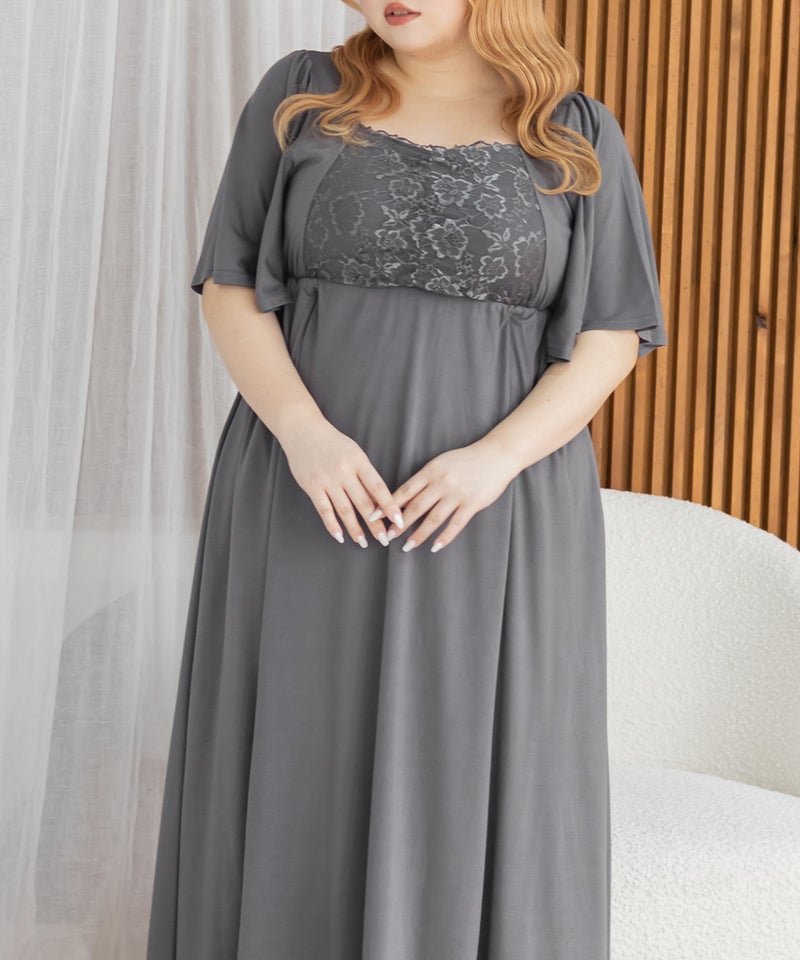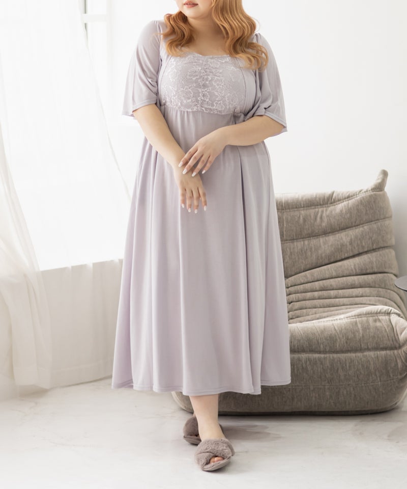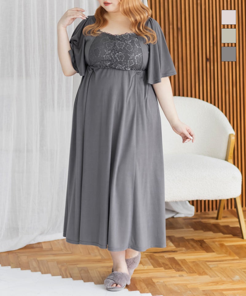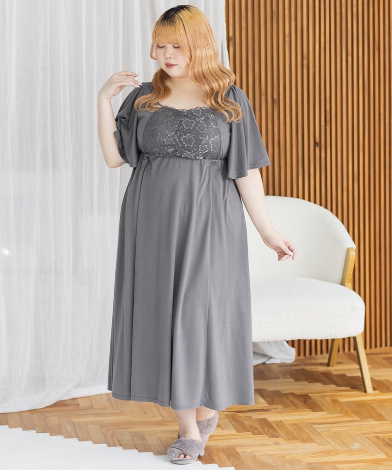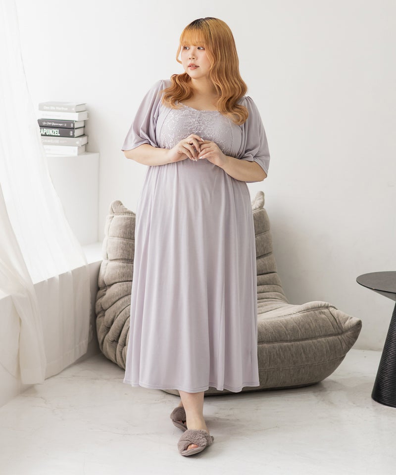 3Lを着て、着用感はちょうどよかったです♪カップ付きなので1枚でさらっと着られて、リラックス感のある着心地が最高でした。ウエスト部分の切り替えデザインのおかげで、すっきりと見えるのが嬉しいポイントです。胸元のレースのデザインが上品で、大人っぽい印象もプラスしてくれるので、ルームウェアでも手を抜きたくない人にぴったり。おうち時間はもちろん、そのままワンマイルウェアとしても使える優秀ワンピースです◎