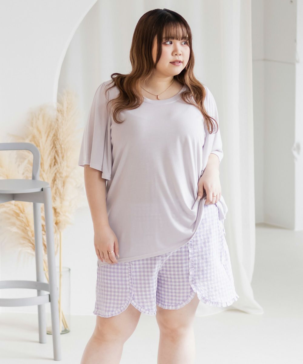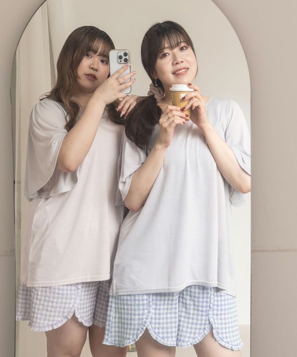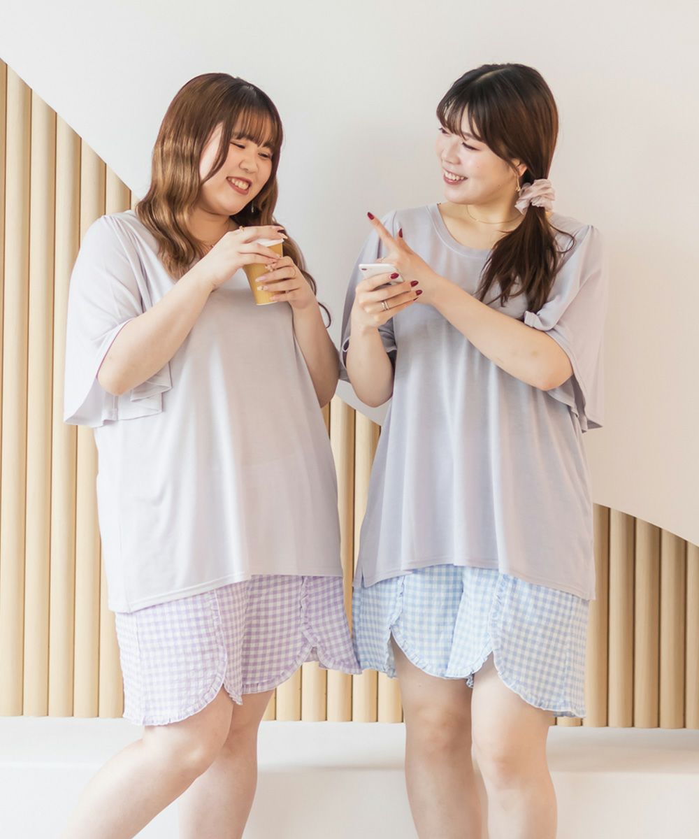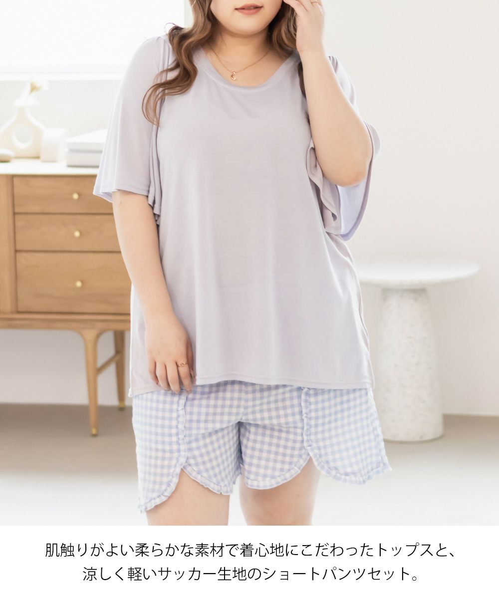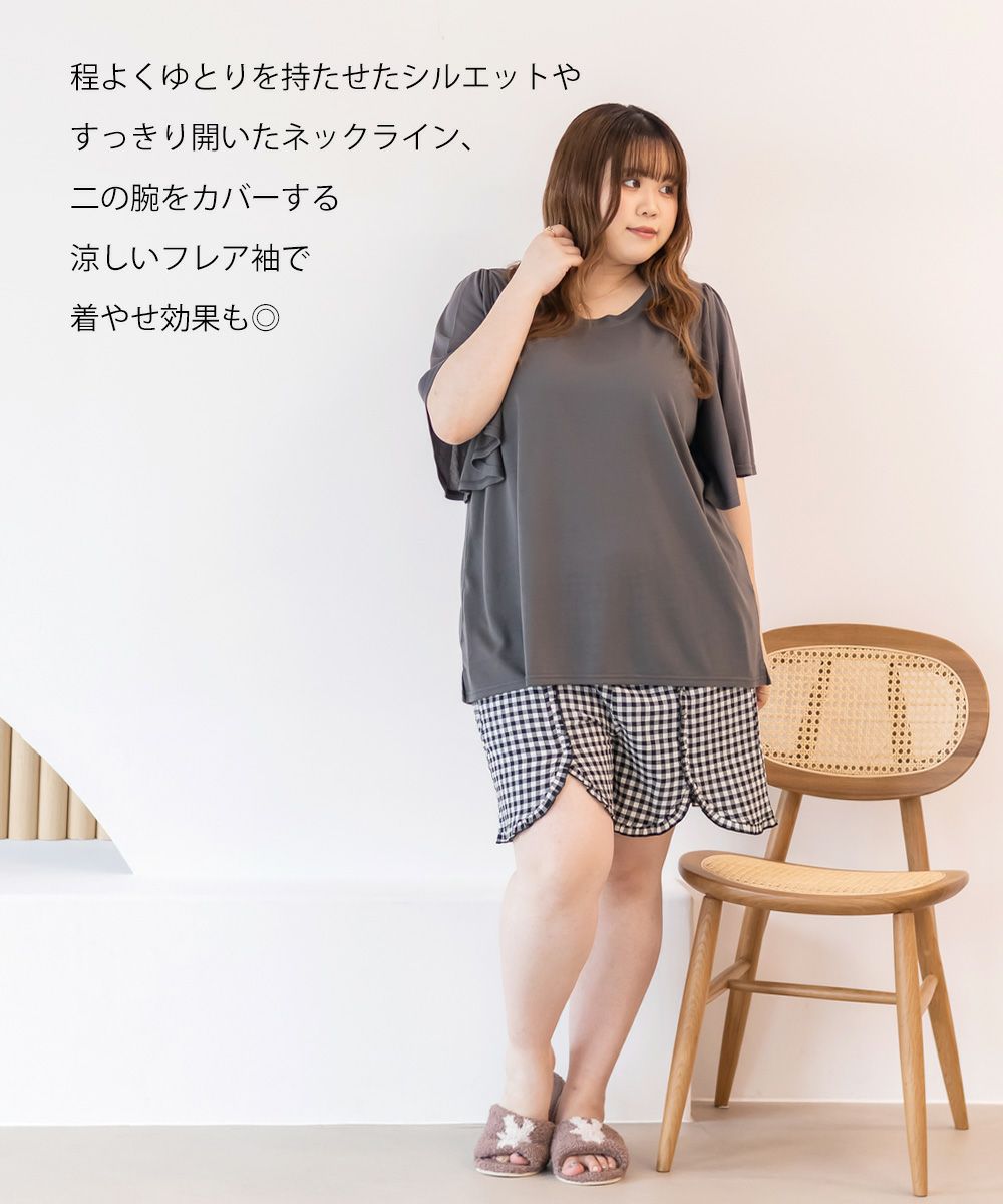 3Lサイズを着用してちょうどいいサイズ感でした。いつも通りのサイズ選びで問題なさそうです。らくちんな着心地で、のんびりするのはもちろん家事もしやすいデザインです◎トップスは気になるお腹周りやおしり・太ももをすっぽり隠す着丈で、着やせするのが嬉しいです♪パンツはお家で使うのにピッタリな短めの丈で、夏も快適に過ごせそうです!セットのルームウェアなのでこれを買うだけでオシャレで可愛いおうちスタイルが完成します!