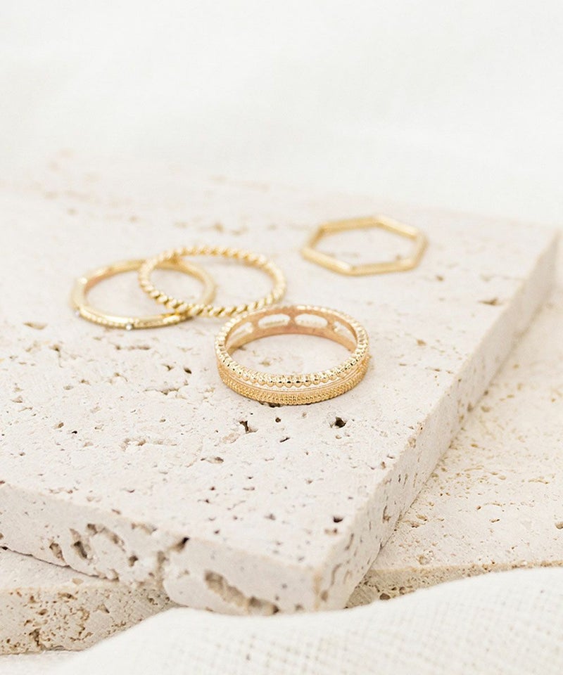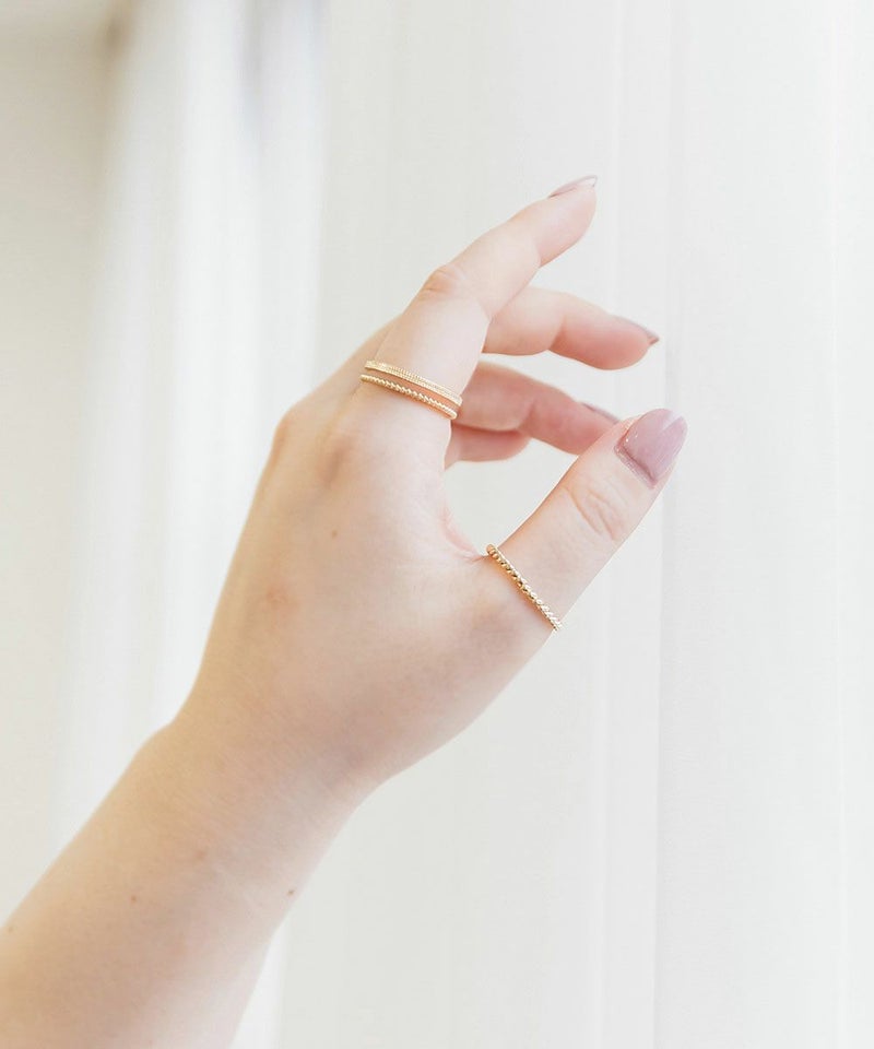 付ける角度によって雰囲気が変わる万能リングです◎肌なじみの良いゴールドで高見えしそう。コーディネートを選ばずにたくさん使い回せそうです!
