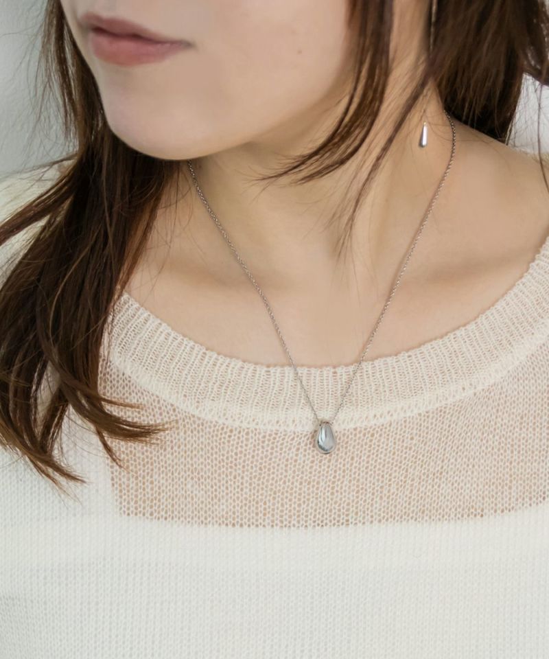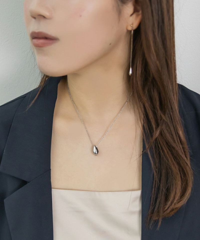 ドロップモチーフが洗練された大人っぽい雰囲気で、普段のコーデに取り入れるだけでお洒落な雰囲気になれます♪使いやすいシンプルなデザインなのでどんなお洋服とも相性良くお使いいただけます!程よく大きめのモチーフになっているのもポイントで小顔見えします◎見た目以上に軽い着用感なのも嬉しいです!1つだけで使うのは勿論、他のネックレスとの重ね付けもおすすめです!普通の長さより少し長めに作られているので、今までネックレスの長さが短くてアクセサリーを楽しめなかった方にも是非チャレンジしてほしいです!