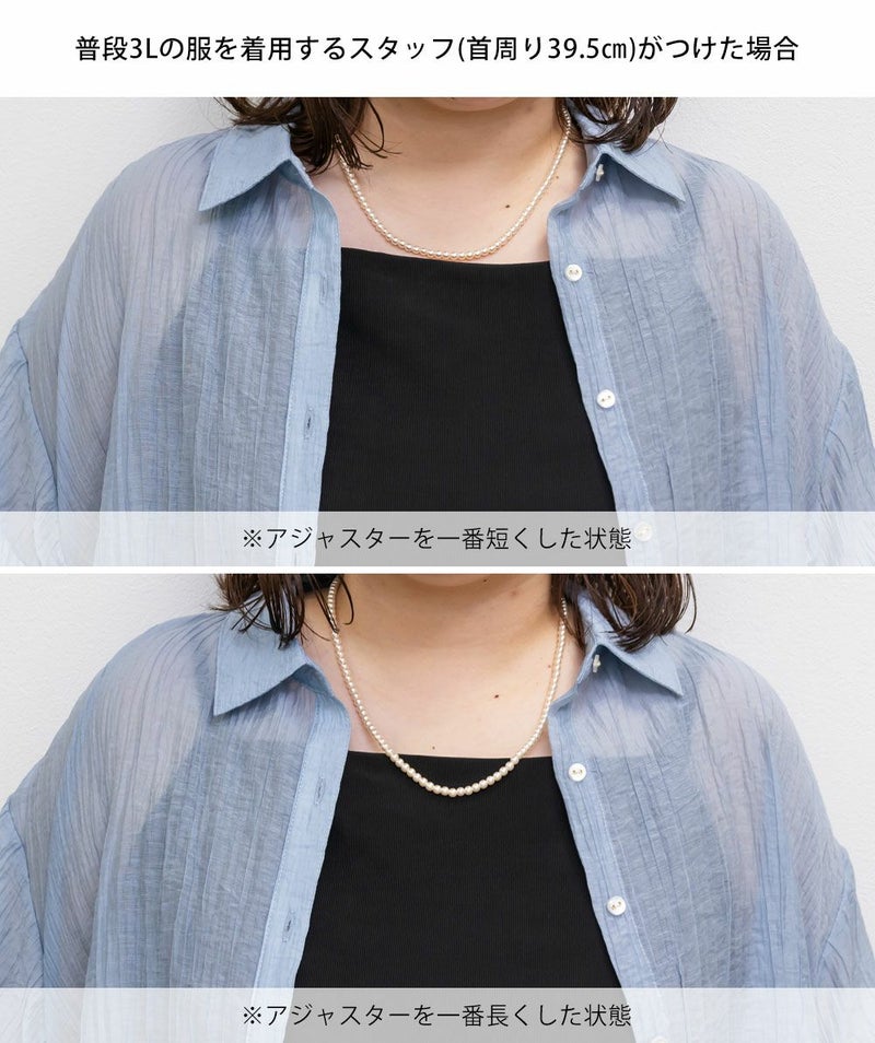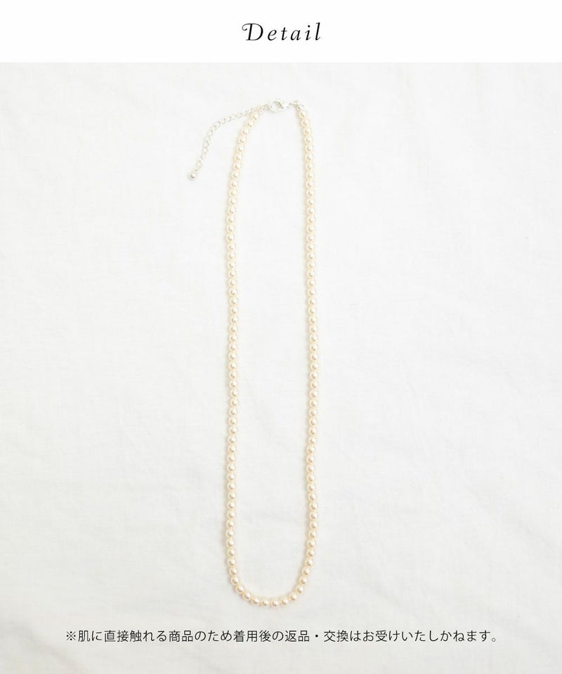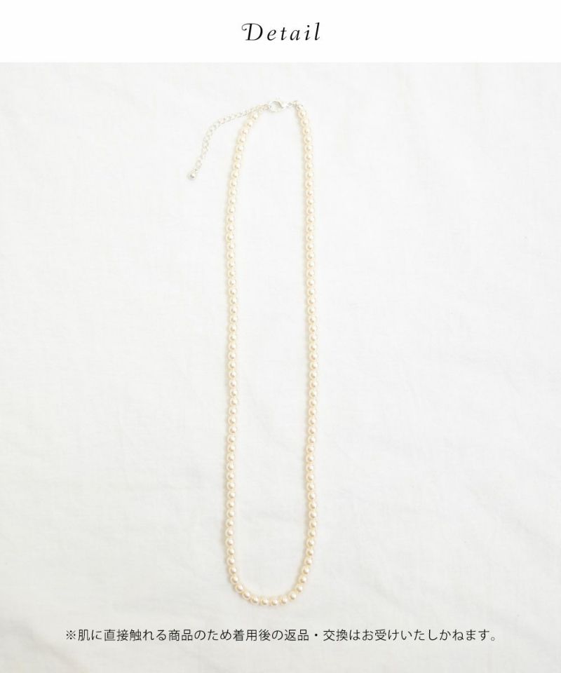 ワンピースなどキレイめのスタイルにはもちろん、カジュアルなニットやシャツにも合わせやすい小ぶりパールのネックレス。シンプルなチェーンネックレスとの重ね付けもおすすめです!普通の長さより少し長めに作られているので、今までネックレスの長さが短くてアクセサリーを楽しめなかった方にも是非チャレンジしてほしいです◎