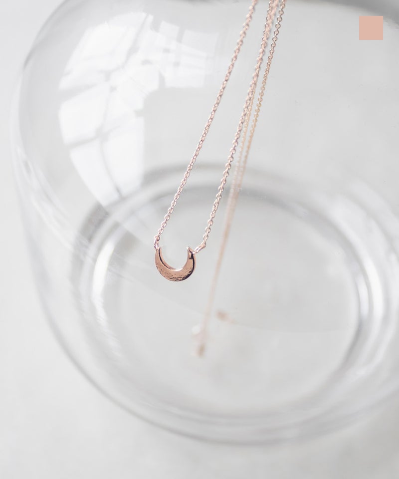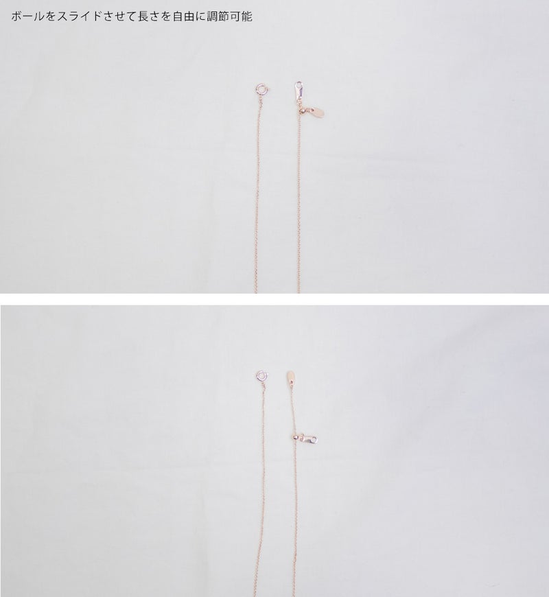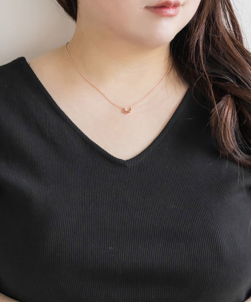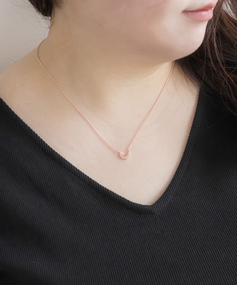 【design】シンプルながらも上品な女性らしさのあるムーンデザインのネックレス。どんなスタイルにも合わせやすい。スライドするだけで長さを変えられるから仕様だから、スタイルに合わせて自分好みのバランスに調節できる。