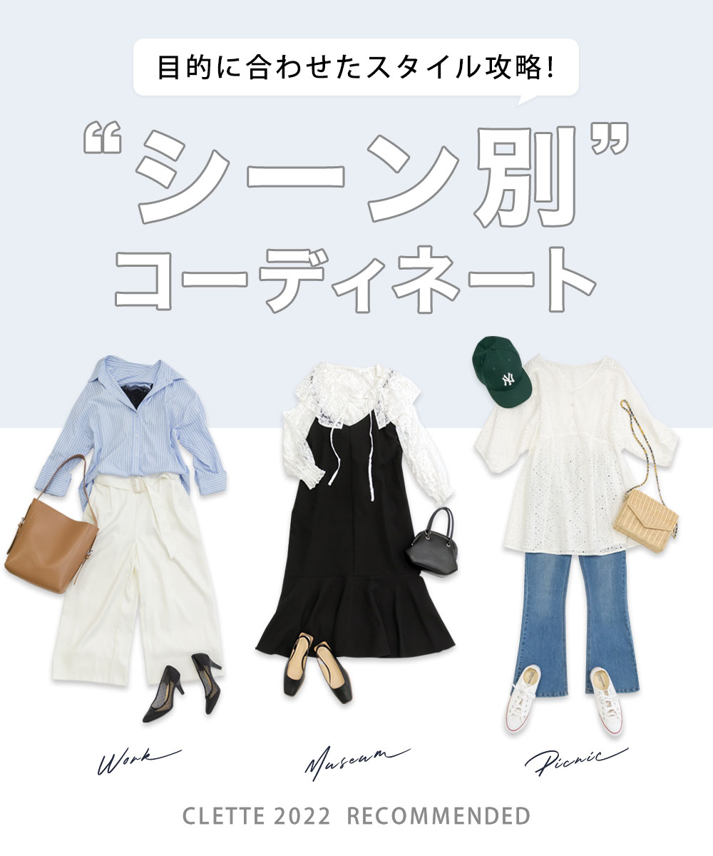 "シーン別"コーディネートおでかけをもっともっと楽しめる目的にあったスタイルをご提案。