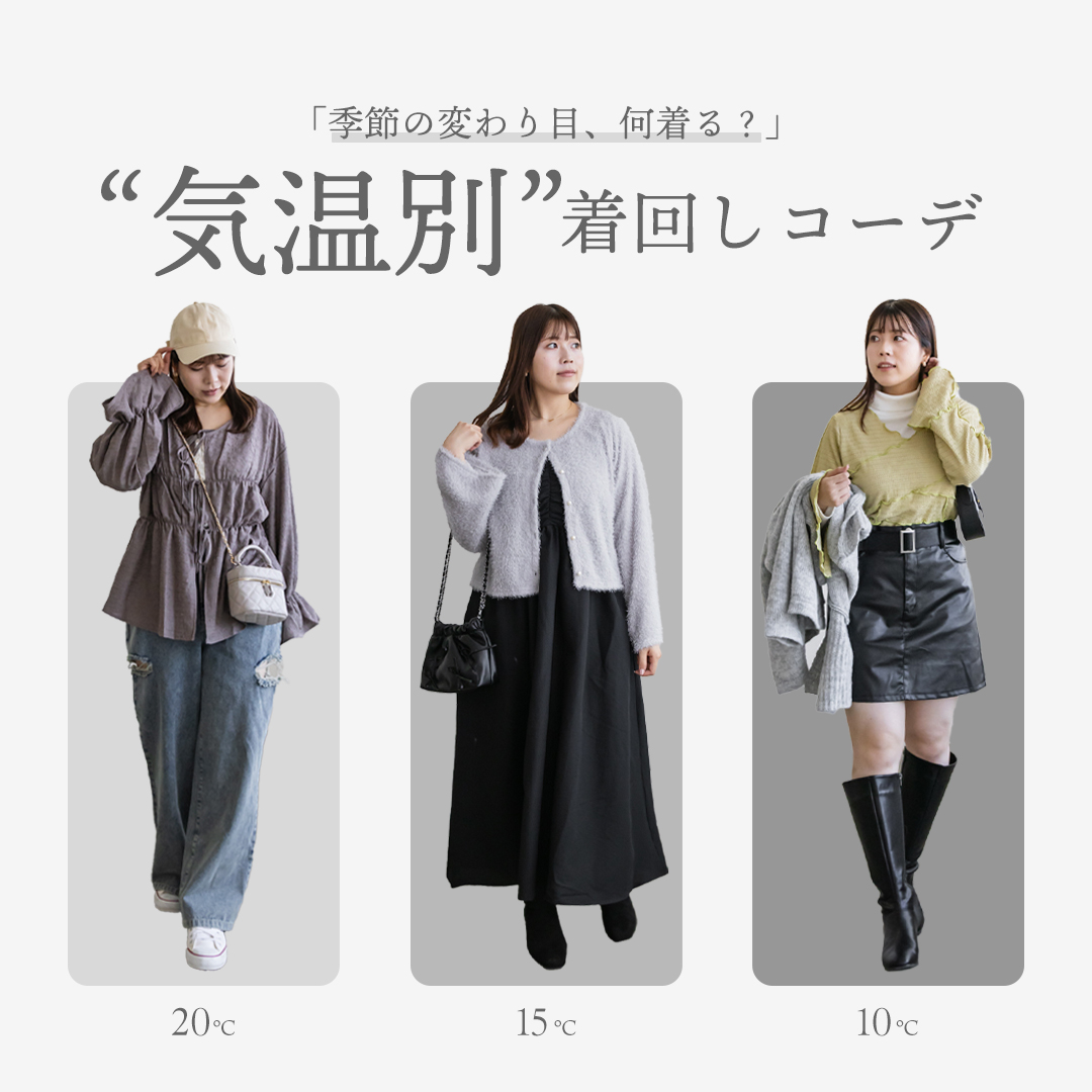 「季節の変わり目、何着る?」"気温別"着回しコーデ今回は20℃、15℃、10℃の気温別コーディネートをご提案。