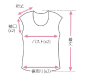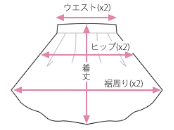 ウエスト:ウエスト部分を直線で測って2倍した値。ウエスト切り替えがない場合は衿の付け根(ネックポイント)から40cmの位置を直線で測って2倍した値。
