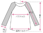 アームホール:肩先から袖の付け下までを直線で測って2倍した値