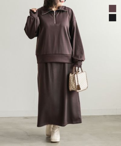 裏シャギーハーフジップ&タイトナロースカートセットのレビュー