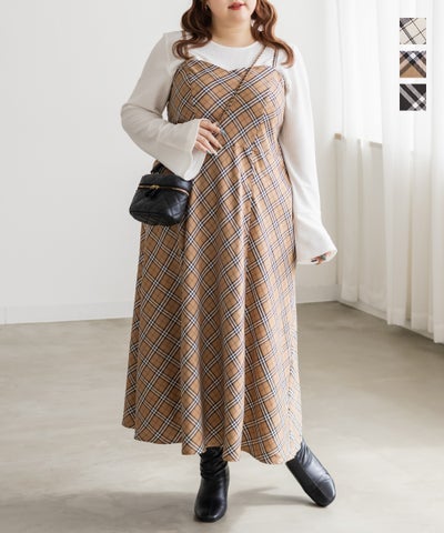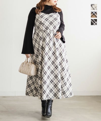 161cm70kg、骨格ウェーブクロス、LLアイボリー購入♡ 一目惚れしたアイボリー♡ お色味は写真だと白地がしっかりハッキリした白味の印象でしたが実物は少し黄味のかかった淡めのくすみ白で、その色の名の通りホワイトではなくアイボリーに黒のチェックでお写真からの想像と少し違いました。 生地は厚手なのかと思いきや薄めで軽く、かといってペラペラはしておらずサッと着やすく、夏場も酷暑日以外なら意外と着れそうでもあり(私的には酷暑日でも着れる)秋冬もモデルさんのようにトップスやアウターで暖かさを足しちゃえば一年中活躍しそうです!☆ このままでも可愛いのですがベルトをして更にスッキリ女性らしい曲線も見せれるし、シンプルなデザイン故に色んな見せ方が出来そうな色んな着方が楽しめる想像性ある楽しいワンピースです♡♡ アジャスターもあるのが地味に便利!私はスカート丈が長すぎるのが苦手なので(段差などで生地が地面を擦るのが悲しい💦)少し短くして足首より指3本分ほど上くらいにはなりました♡ 本当に個人的な事ですが、私は白×黒チェックのお洋服はデザインが似合うものと変ではないけれど超似合ってるわけではないとに分かれるっぽく(肌の色の関係もあるかも💦元は色白で腕や身体は白いけど顔や首は長年のアトピーで少し黒め)、今回は後者の方でした…😢😭 ですがやはり一目惚れしただけありとても可愛いですし、細見えするし色々楽しめるのが魅力なのでトップスを工夫したりして満喫します♪ 買って後悔はないです☆活躍の幅が広そうだし軽くて着やすいのでおすすめです😉♪✨️