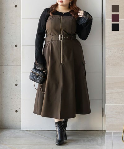 バーガンディ色大好き民です。4Lを購入しました。 普段4L~できれば5Lが丁度な159cm体型の着方試行錯誤を記載します。 ①胸上のベルトループに付属ベルトを通す:この着方を第一にしたくてやってみましたが、私の極太体型では無理と判明しました。最後の穴に金具通してぎりぎりな着用感で、下にトップス着てるとちょい苦しいです。そして余ったベルトの在りかに困ります。まず4Lの付属ベルトのサイズについて素人によるざっとした計測だと、金具ある方の端から反対の端まで全長が約160cm・金具横布の端から最初の穴まで約90cm・最後の穴までだと約107cmでした。ワンピース自体はウエストゴムで身幅にややゆとりありますが、ベルトがキツイです。穴のエリアをもう20~30cmずらしてあれば余裕ができるのになと惜しいです。このベルトで合う方は1つサイズ下げてもいけると思います。そして最後穴の周囲107cmあたりでベルトをしても、胸元の場合次のベルトループまでは留まりますがその次のループは背中上になり、体の硬い私ではそこに端を差し込めません。よく動かす腕に近いので差してもすぐ落ちそうですしね。手間がかかることもあり胸元ベルトは諦めました。 ②腰のベルトループに付属ベルトを通す:ウエストマークになりこちらの方がループから外れても直しやすいです。この着方で着られますが、背中側が気になります。ワンピースの背中側が上辺とウエストにゴムがあれどその間はギャザーでふわっとしており、ベルトで締めると背中がボワっと膨らんでる感じになります。上着が無いと個人的にはちょっとなと思います。 ③付属ベルトを使わずそのまま着る:センタージップとベルトループ、ヒップ下のサイドポケットがアクセントになるので、ベルト無しでも十分着られると思います。 ボルドーやダークパープルのニュアンスもある深いバーガンディでかっこいいです!ハリのある生地でシワは気になりません。ふくらはぎは隠れる丈で、前スリットも膝はほぼ見えないくらいなので快適です。