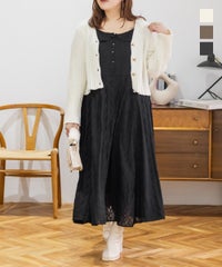 骨格ストレート・155センチ・73キロ。お腹の肉が浮き輪が1番気になる箇所の人のレビューです!笑 ふわふわのレースでは無いので広がらずストンと落ちてくれるワンピースです。 お腹の肉感も拾わず、いい商品でした! ですがストラップを短くしても155センチの私には丈が長く床からギリギリでした。 クレットあるあるで低身長の私だと、スカート、ワンピース長いことが多いです。