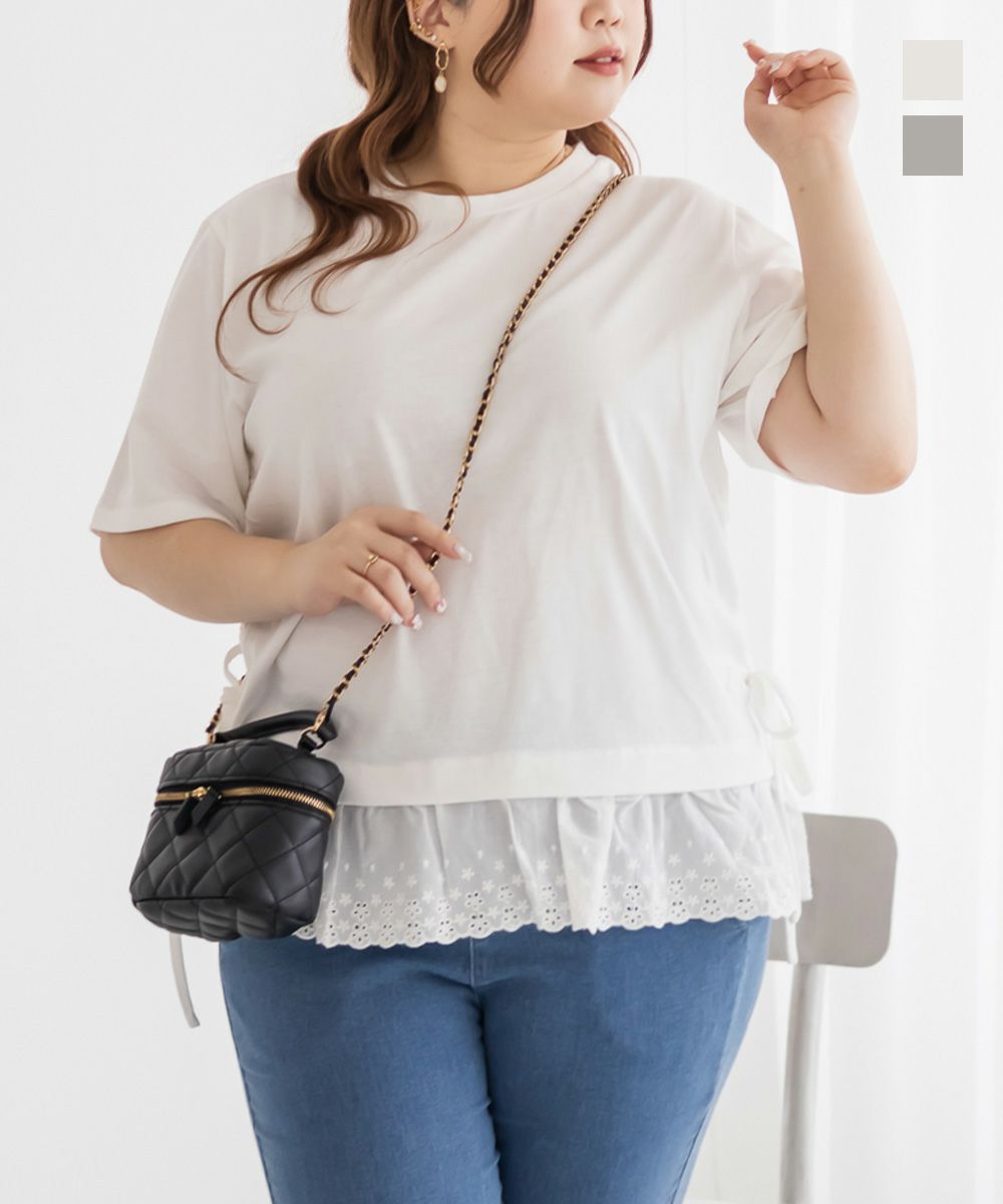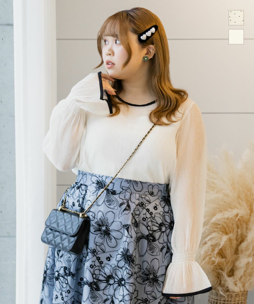 オフホワイトをいつものサイズで買いました。 透け感もデザインも可愛い! ゆとりがあるので下のサイズでも着れそう。 -