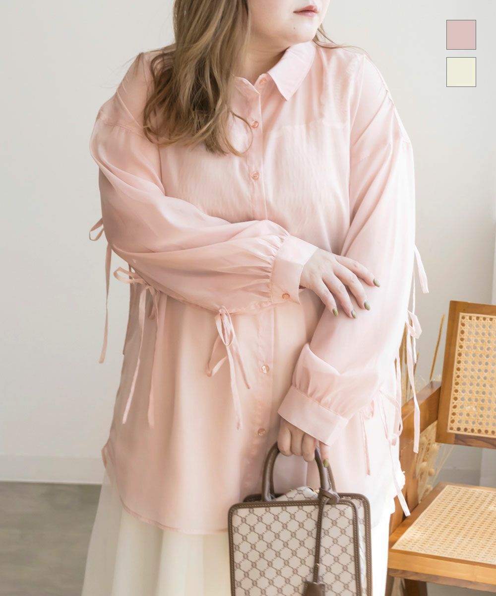 ピンク3L購入しました。 優しい色味がめっちゃかわいい!!! シア感が今からの時期にいいです! まだ洗ってないけど、シワになりにくい素材かなぁと思います!