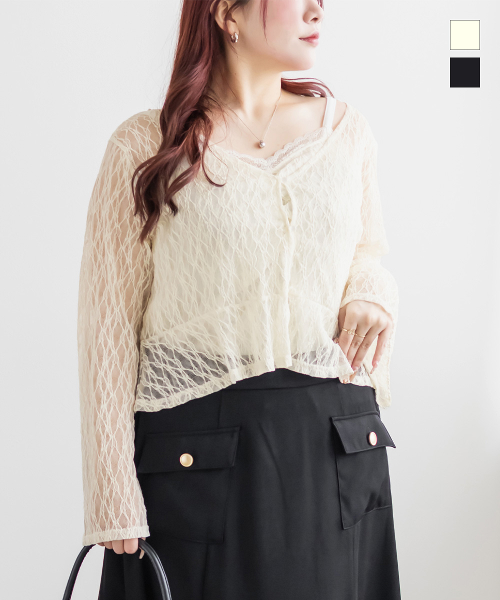 ボトムスが暗いカラーのものが多いので白を購入。 4Lにしましたがいいサイズ感でめちゃくちゃ可愛いです。 レース素材なので引っかかりやすい場所に気をつけなきゃならないのが面倒ですがそれでも黒も買いたいと思える可愛さでした。なんなら黒の方が可愛いんじゃないかと思います。