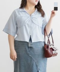 新発売で画像を見た時に一目惚れしたブラウスです。ブラウンの4Lを購入。テラコッタやレンガ的な赤みブラウンが大人っぽい絶妙な色味。そして凝っていて着やせを叶えてくれるデザインがCLETTEさんらしい品だと思います。 胸元レースアップで伸縮性は特にないので、胸囲寸法を確認した方が安心です。首元がキーネックのように少し抜け感があり、長めフレア袖が太い二の腕をしっかり隠してくれます。胸元はピタッとした着心地で腰の下からふわっと広がっているため、上半身がコンパクトに見えかつくびれを演出できます。腰から下のふんわり感がお尻を大きく見せるのではと心配しましたが、この品の技あり要素でただ広がるのでなくひだがきれいに整って、縦の落ち感ができることでお尻もそう大きく見えません。インスタライブで解説があった通り、三角のように斜めに入った縫い目がいくつかありそこがひだになって立体的なペプラムを演出してくれるのがとてもかわいいです。 レースアップ・袖の形・腰のペプラムで縦直線要素が多いのでスッキリ見えるんでしょうね。大好きなデザインです。タイトスカートやストレートパンツといった広がり過ぎないボトムスを合わせたいです。 -