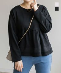 シンプルだけど、ペプラムとか透け部分とか小ワザがきいてる感じでスカートにもパンツにも合いそうです。普段3Lですが、こちらはジャストで、ワンサイズ上でも良かったかなというお品です。 -