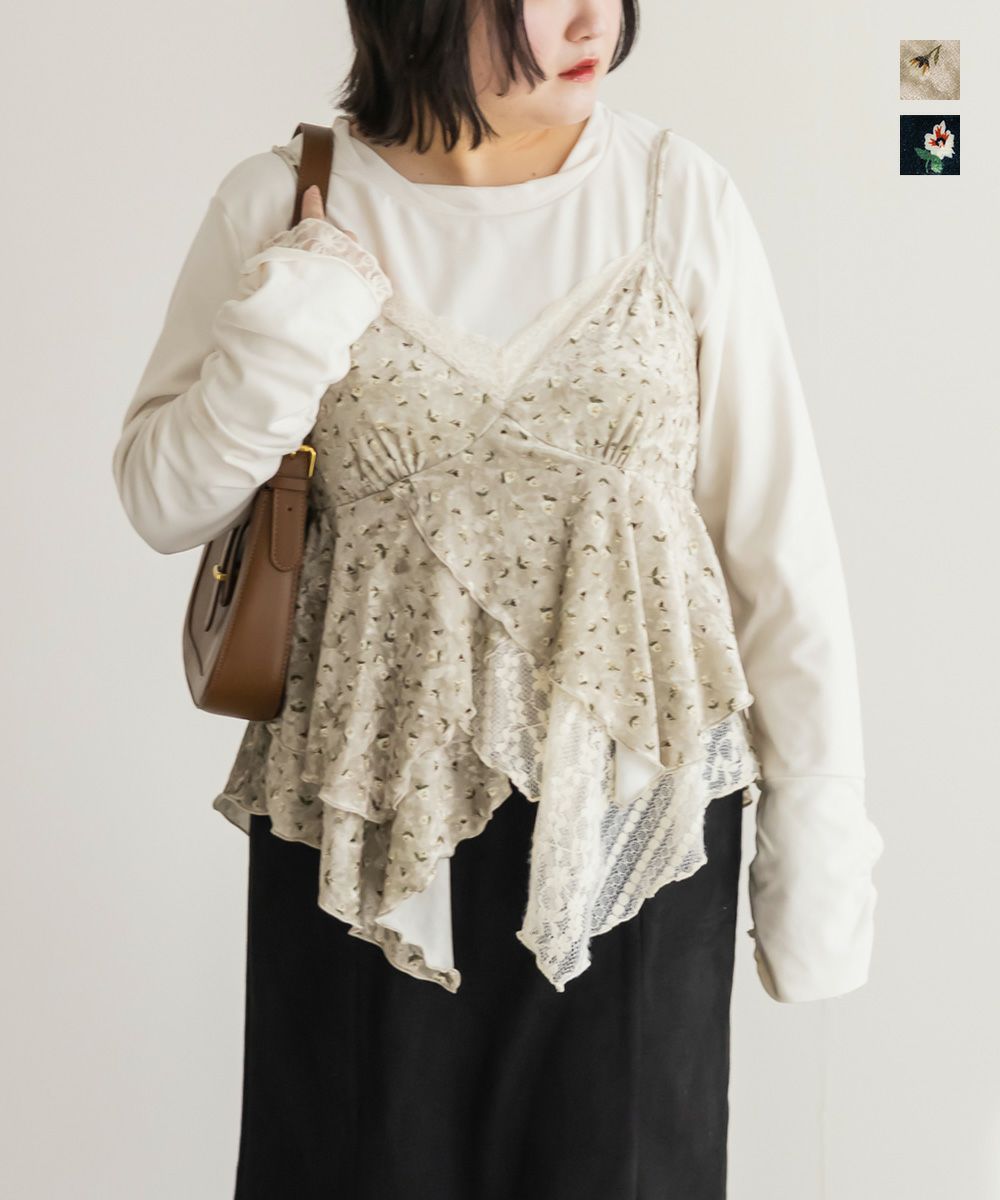 身幅表記がタイトだったので、心配しつつワンサイズあげて購入。 結果、胸元、生地がめちゃくちゃ伸びます!ワンサイズあげる必要なかった!いつものサイズでぜんぜん余裕で大丈夫だったと思います! 柔らかくてよく伸びるので窮屈感もないです。 裾のレース感がホントに可愛い。 丈感も思ってたより長すぎず、スカートと合わせても可愛いです。 -