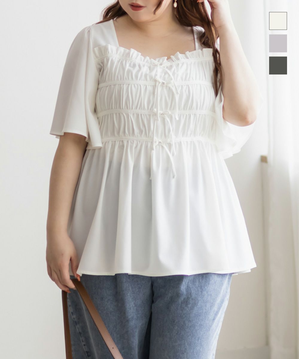 他の画像を見る クレット 大きいサイズ プラスサイズ シャーリング ビジュー ペプラム フリル スクエア フレア袖 CLETTEオリジナル★ギャザーリボンデザインブラウス ¥ 5,940 税込 クレット 大きいサイズ プラスサイズ シャーリング ビジュー ペプラム フリル スクエア フレア袖 カートに入れる お気に入りに登録する